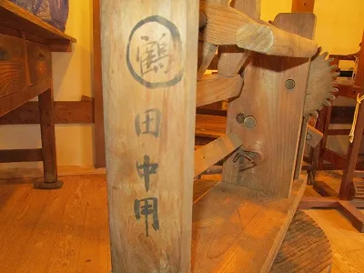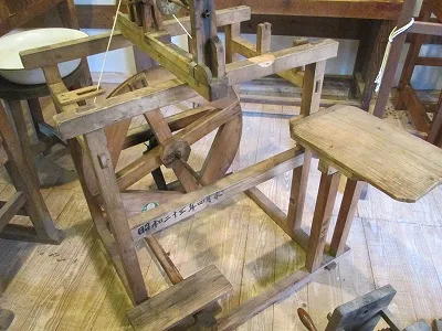 足踏み式の糸車。昭和23年、66~7年前のもの。